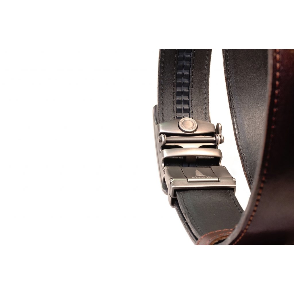 Ručně vyrobený opasek z pravé italské hovězí kůže. Opasek je vhodný ke společenskému i volnočasovému oděvu. Lakované hrany a upravený rub zaručují, že nedojde k zabarvení oděvu ať už nosíte naše kožené pásky k obleku nebo volnočasovým kalhotám. Opasek má dekorativní obšití a má vyšší středovou část se zúženými okraji, tzv. bombírované provedení. Useň splňuje všechny atesty na zdravotní nezávadnost. Opasek lze snadno zkrátit díky zaklapávacímu mechanismu spony. Součástí balení je návod s instrukcemi ke zkrácení pásku a také kožené poutko v barvě opasku.