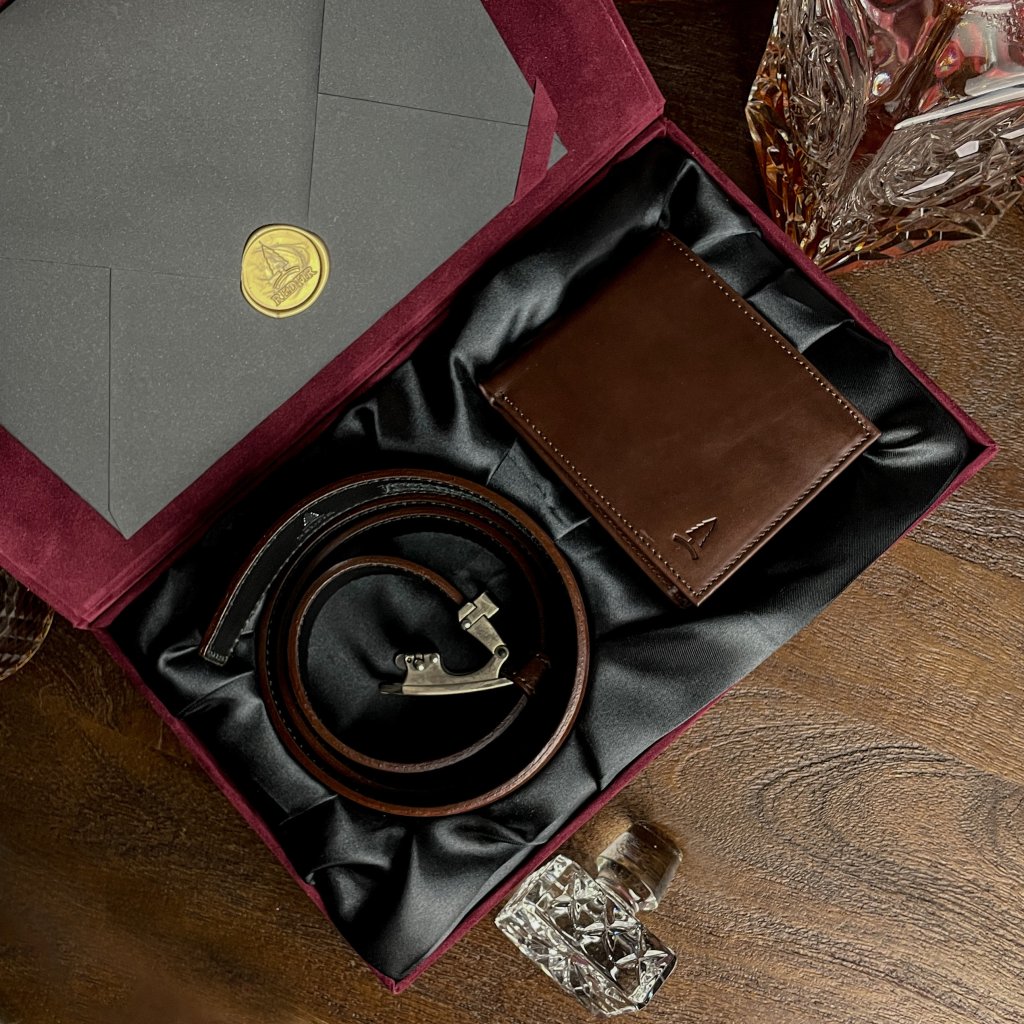 Dárková hnědá sada pro pány Euphory - pásek a peněženka