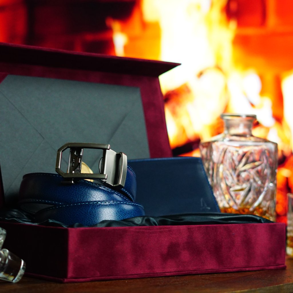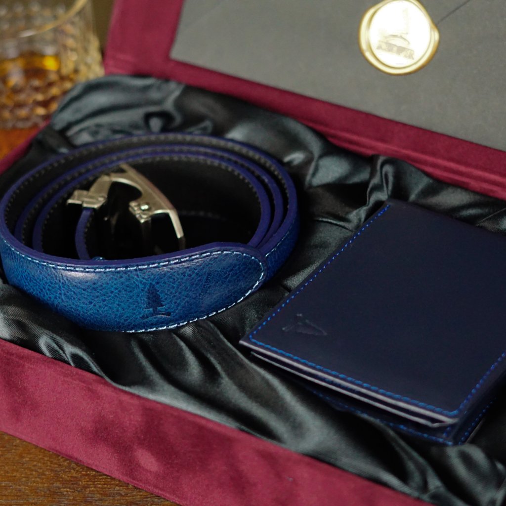Dárková modrá sada pro pány Universe - pásek a peněženka