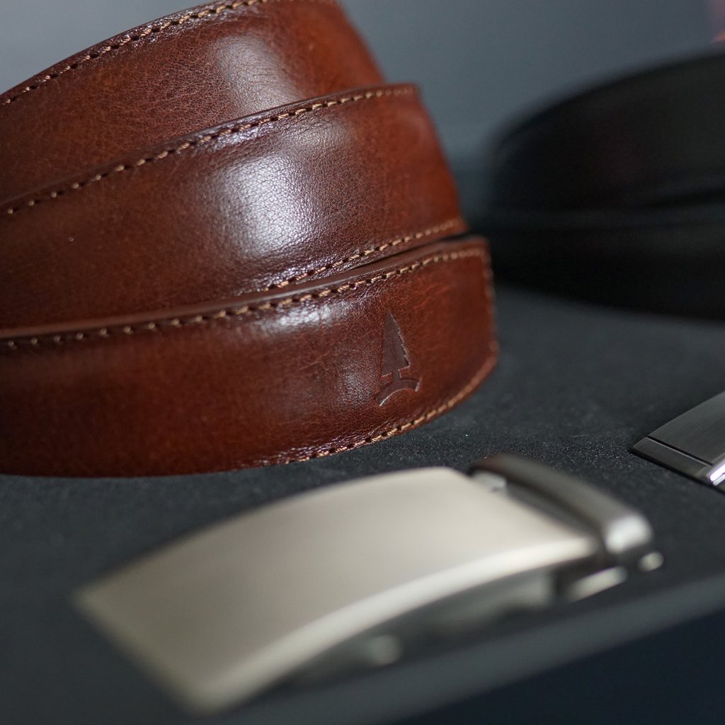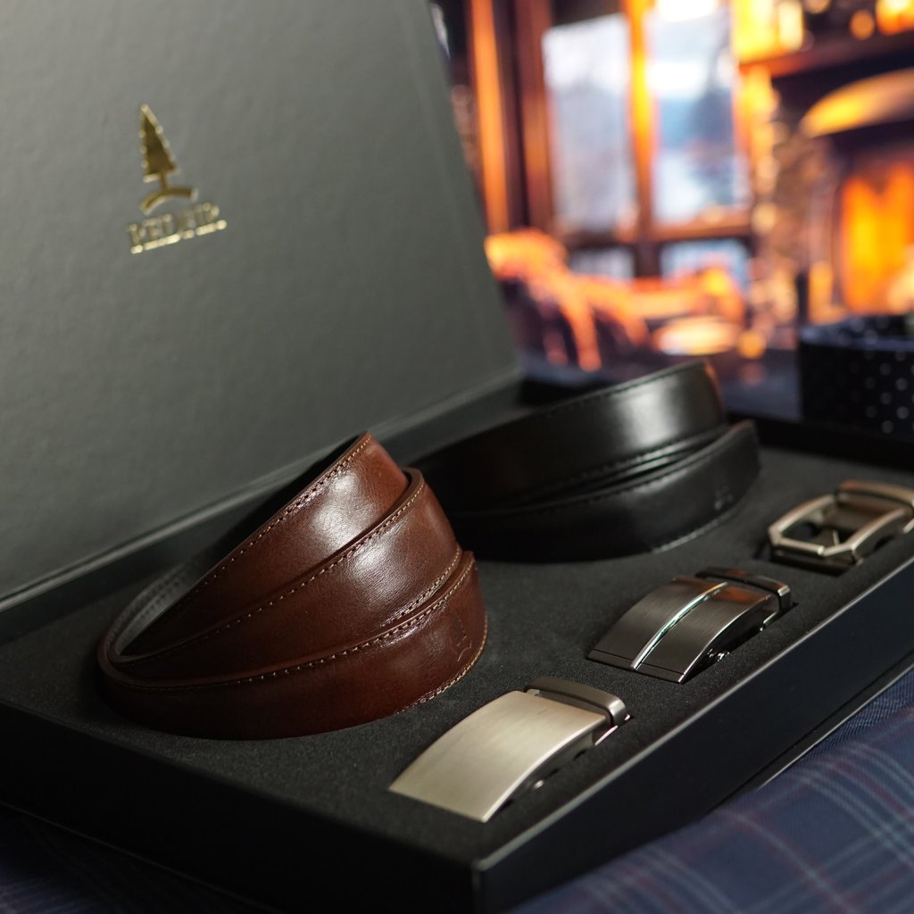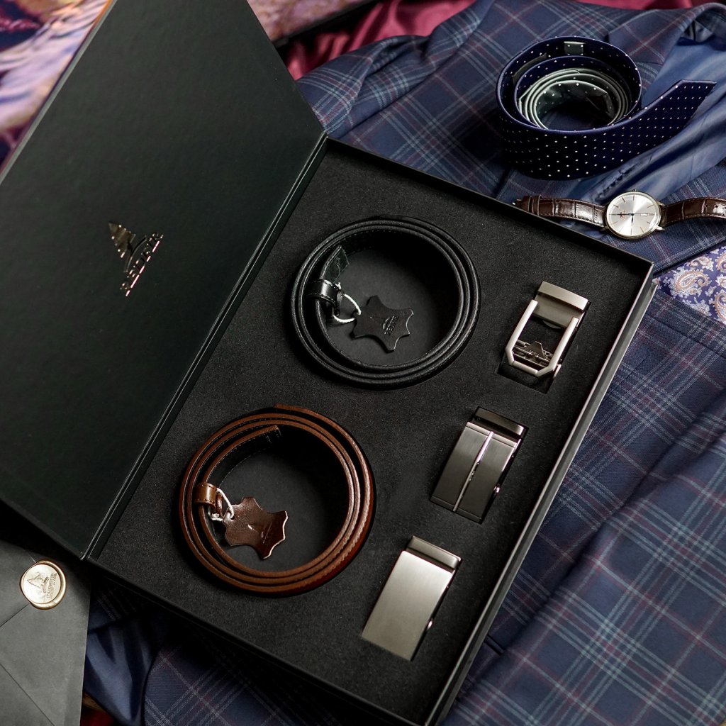 Dárková sada s 2 automatickými opasky a 3 sponami – umožňuje až 6 různých kombinací opasků a spon